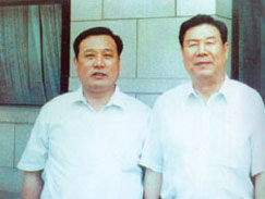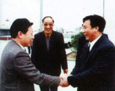 社會保障部鄭部長(右一)在北京親切接見董事長  廣電部孫部長(左一)來公司視察工作
